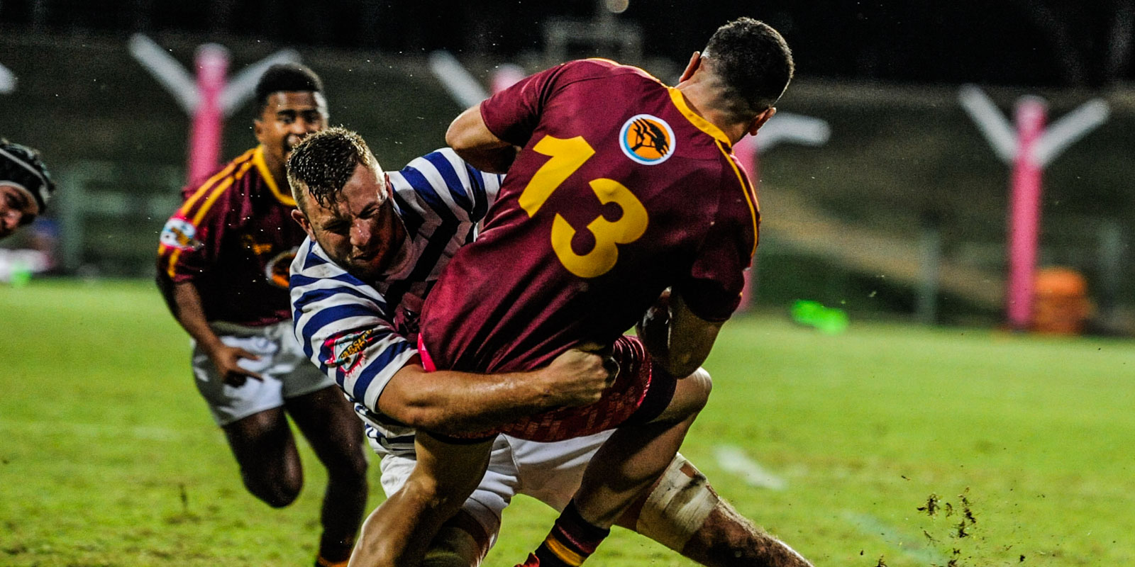 The scores were tied at 5-5 after two early tries before the Maroon Machine powered ahead, with Venter scoring twice from strong driving mauls late in the first half, and adding his third shortly after the break.