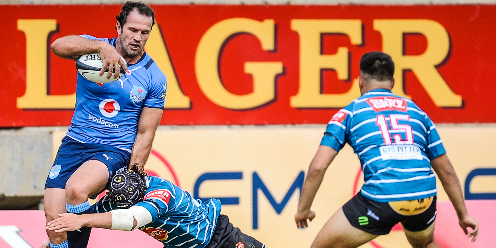 Corne Fourie on the charge for the Airlink Pumas.