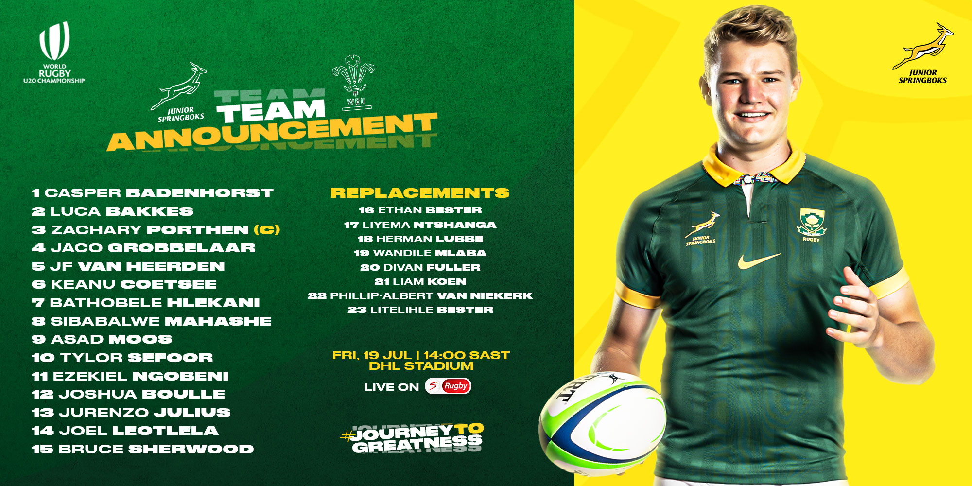 “All of the uncapped players, apart from Ruan Venter, were also members of our training squad in June, and we were very impressed with the way they fitted into our structures and their work ethic. We have full faith in their abilities, and we’re excited to see what they offer on the field on Saturday.