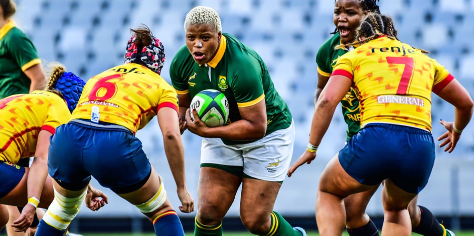 The Springbok Women started the game on the back foot with Spain showing their attacking intent early, despite the swirling wind, but South Africa defended very well, even after losing Sanelisiwe Charlie to the sin bin for repeated infringements in the seventh minute.