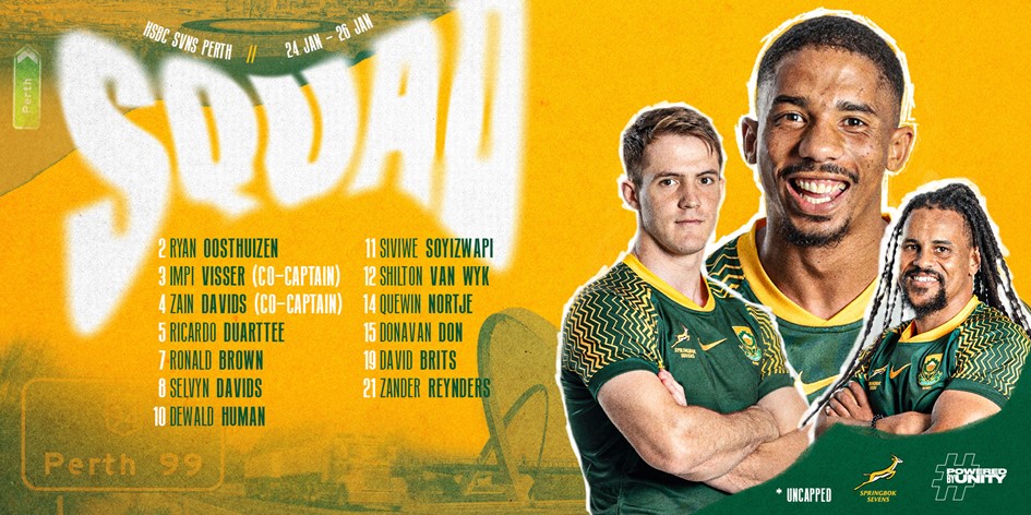 Springbok Sevens squad for the HSBC SVNS Perth:
