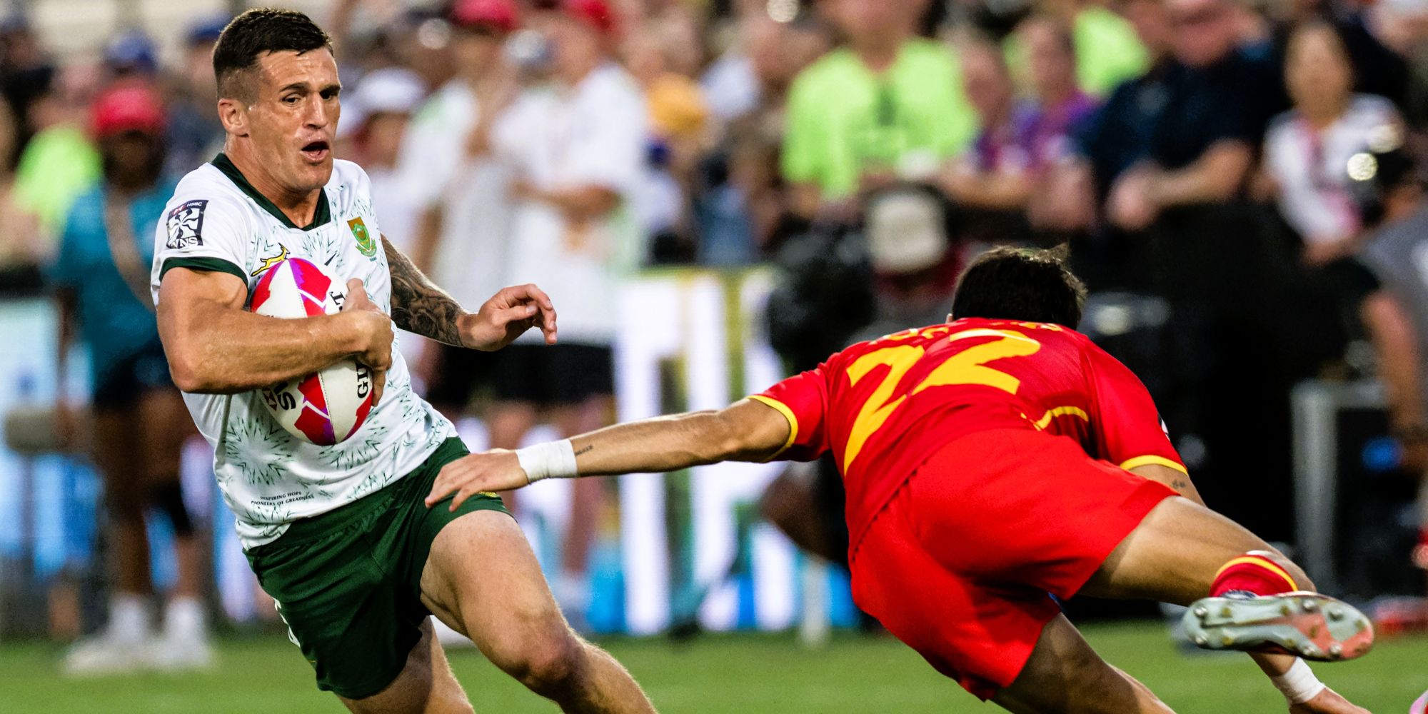 Kelly Mpeku capitalized on a loose ball to sprint clear for the opening try, followed shortly by Nico Steyn finishing off a flowing move sparked by a break by Smith.