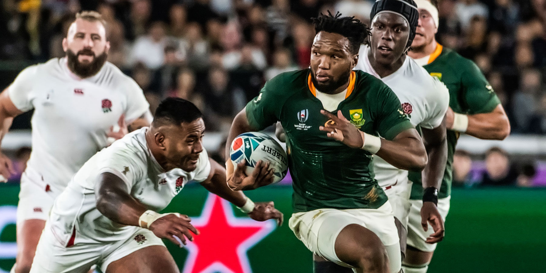 Lukhanyo Am in action against England in the RWC final in 2019.