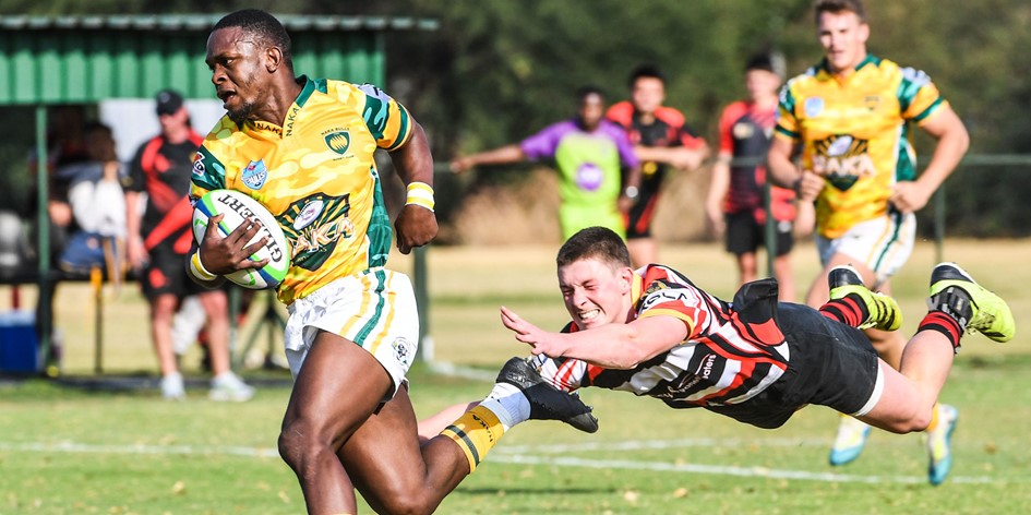 Naka Bulle scored 10 tries in their runaway 66-30 semi-final victory against Helderberg from Western Province, with Martin Austen (outside centre) claiming a hat-trick. The hosts were in control for much of the contest, although replacement Jaeden Daniels bagged a brace for the visitors from Cape Town.