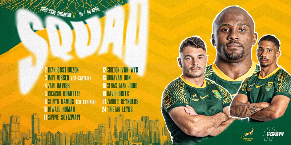 Springbok Sevens squad for Singapore: