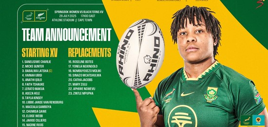 Springbok Women 26 (12) – Tries: Aseza Hele (2), Babalwa Latsha, Nombuyekezo Mdliki. Conversions: Jakkie Cilliers (3).